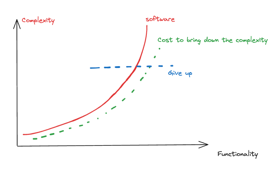 It all comes down to “complexity”. Human has inherit limited ability to handle complexity, whereas building software comes with immense complexity, here’s how to complexity grow in my mind: