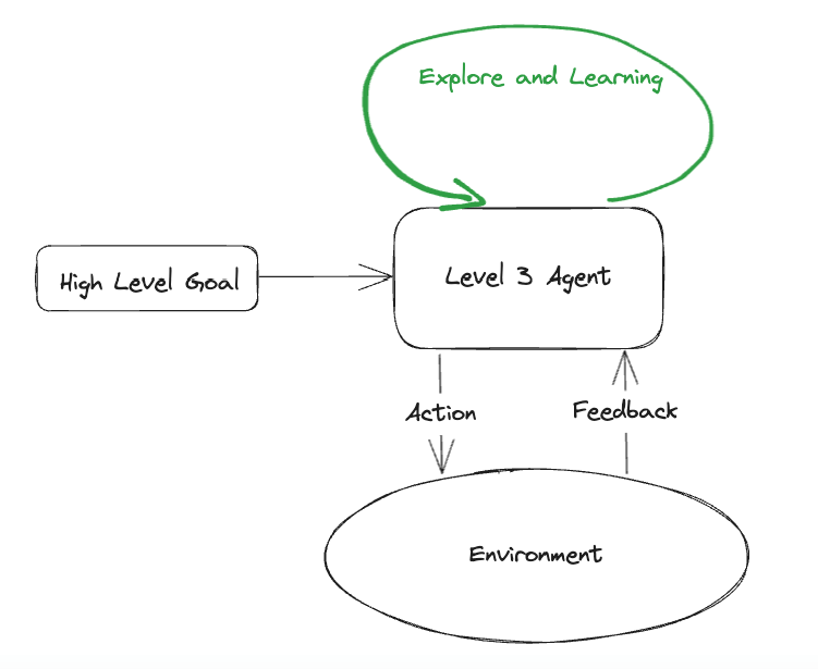 I expect Lvl 3 agent to be so good at self reflection that it’ll never get lost and can execute unlimited steps; it can also actively explore the external environment, and beware of whether the feedback is a valid “verification” of its execution, hence no need to carefully design feedback mechanisms for the agent.